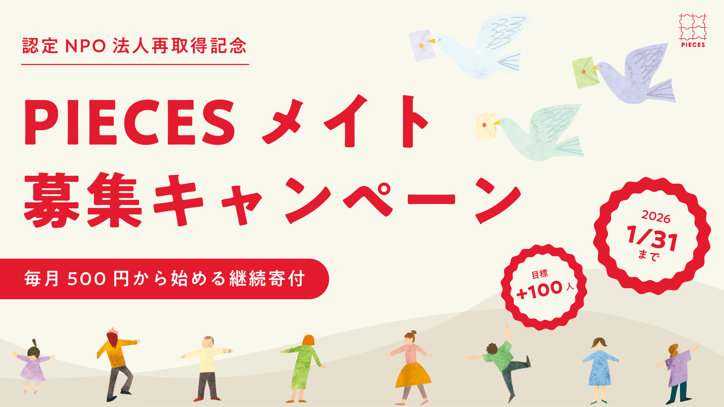 認定再取得にともない、改めてPIECESが目指す未来をともに育む仲間 “PIECESメイト(継続寄付者)”を募集するキャンペーンを実施します!
