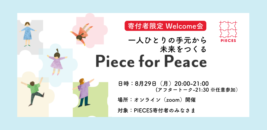今回のWelcome会で、Piece for Peace のコミュニティを体感いただければと思います。