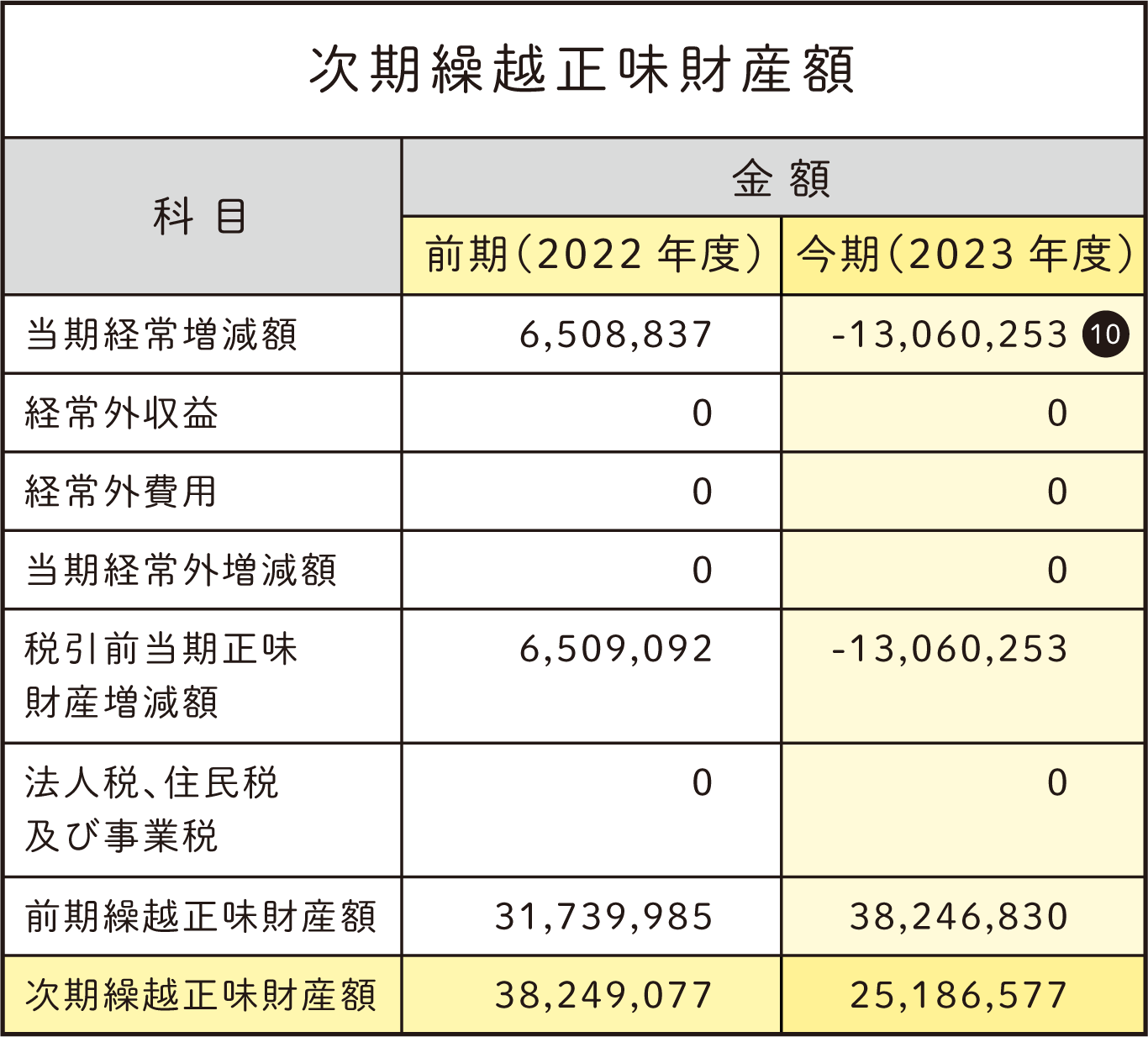 ⑩当期経常増減額