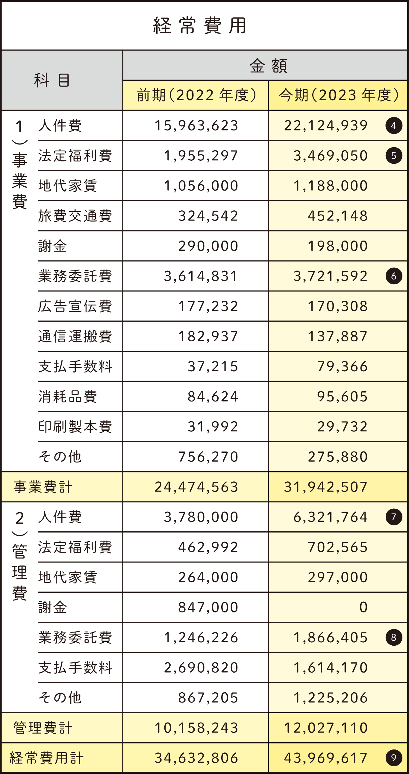 事業費・管理費共に、人件費の増加に伴って社会保険料等の支払い分が増加しています。