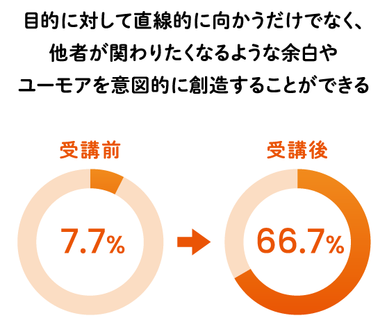 プログラム開始前後の参加者アンケートでは、今年度は以下の項目で「当てはまる」「とても当てはまる」の回答割合に大きな変化が見られました。子どもの為にできることを考えるだけでなく、自分にとって心地よい関わり方を探求することがプログラムの特徴です。