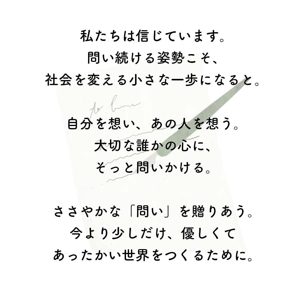 今回のキャンペーンの感想では「問いを考える中で、問いを考え続ける大切さに気づきました。」などのコメントなどをいただき、「問い」を通じて自分や社会を見つめ直すきっかけが生まれていたら嬉しいです。多くの方にご協力いただき、心から感謝申し上げます。