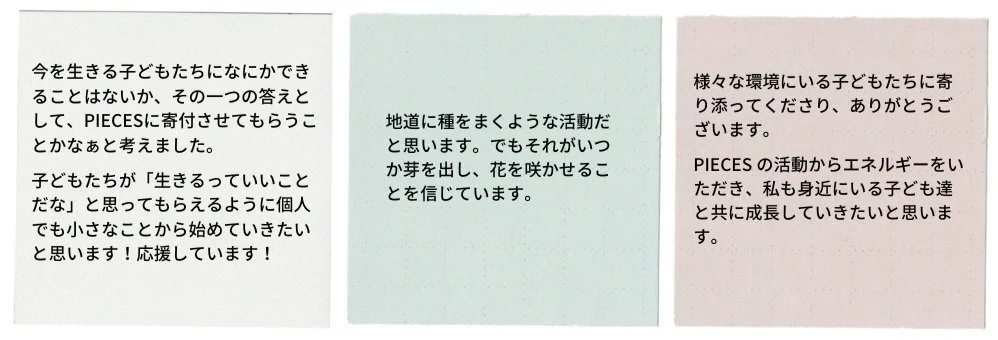 問いを通じて、自分の状況や自分がされて嬉しかったこと、悲しかったこと、想いを改めて見つめ直すことができています。